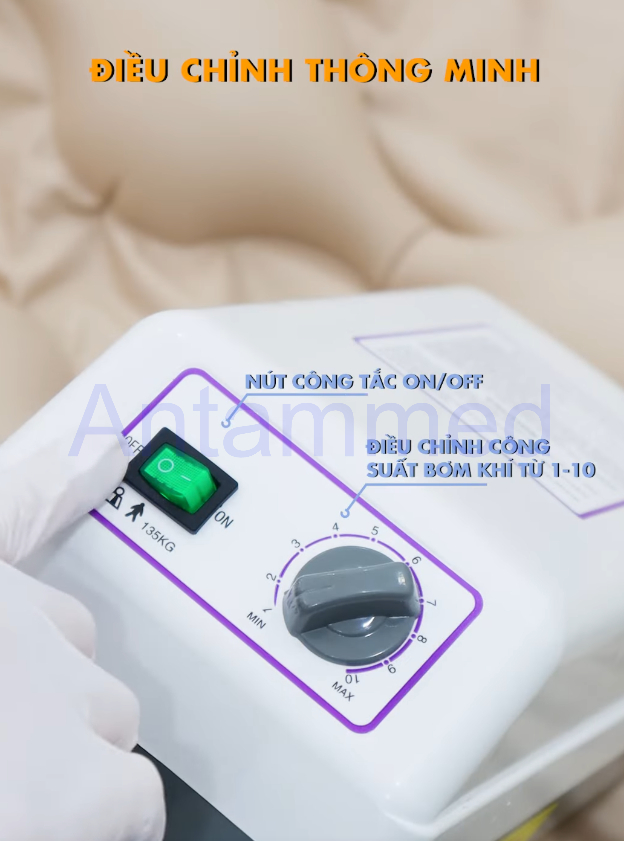 Chống loét hiệu quả: Cơ chế thay đổi áp lực liên tục giúp giảm thiểu tối đa các điểm tỳ đè – nguyên nhân chính gây loét da.
